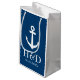 Ancrage nautique monogramme mariage en faveur sacs cadeaux. Design maritime mignon avec ancres pèsent symbole et initiales de nom. Ancrage monogramme bateau / bateau avec initiales en typographie élégante. Personnalisé avec des lettres stylisées pour mariée et mariée plus la date du mariage. Parfait cadeau jeton / sacs souvenir pour plage / mariages à thème balnéaire. Joli bleu marine et blanc.