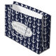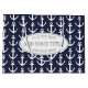 Grand sac cadeau personnalisé avec ancres nautiques motif. Couleurs bleu marine et blanc avec étiquette ovale. Sacs cadeaux élégants pour les occasions de fantaisie comme mariage de destination de plage, douche nuptiale, fiançailles, anniversaire ou baby shower. La typographie classique pour le nom, les citations amusantes ou les paroles. Mignonne partie faveur sac pour mariée et demoiselle d'honneur. Design de luxe avec imprimé d'ancre de bateau. Aussi agréable pour des vacances à thème maritime ou Anniversaire de marin, skipper, capitaine de bateau etc. Les Ancres pèsent ! Sacs de grande taille pour cadeaux et accessoires.