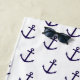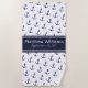 Simple mais frappante, cette serviette de plage dispose d'un arrière - plan à ancre bleu marine nautique avec un espace élégant pour ajouter votre nom ou un message de votre choix.