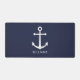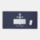 Souris minimaliste moderne avec ancre blanche avec nom personnalisé en blanc style de police sans serif moderne sur arrière - plan bleu marine.