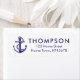 Un nom bleu marine sur le thème nautique et une étiquette d'adresse de retour avec une ancre et une corde à côté de votre nom de famille et des coordonnées de votre adresse. Conçu par Thisisnotme©