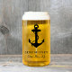 Un thème nautique peut verre pour votre bateau avec une ancre noire classique et le nom et l'emplacement de votre bateau dans un script élégant et la typographie.