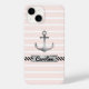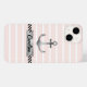 Coque iphone moderne avec ancre d'aquarelle gris sur un arrière - plan rayé rose clair et blanc. Vous pouvez également personnaliser la conception avec du texte personnalisé sous l'ancrage.