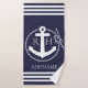 Monogramme personnalisé de 2 lettres avec nom marine et blanc ancre plage / serviette de bain.