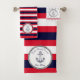 Marine Ancre nautique Marine Bleu blanc Bleu Rouge Bandes Serviettes de bain Jeu de Personnaliser en ajoutant Nom du bateau à la date Design établi par Sandy Closs