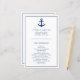 Programme de mariage nautique avec ancre bleu marine avec votre monogramme de chaque côté, sur un arrière - plan blanc. Le front a vos cérémonies et l'arrière a votre fête de mariage. Un design simple mais élégant, parfait pour une fête sur le thème de la plage en été. Ces programmes de mariage bon marché sont imprimés sur des feuilles de papier pour une option économique.