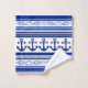 Cette serviette de bain a un design nautique amusant avec des ancres, des cordes et des rayures en bleu sur un arrière - plan blanc. Parfait pour une salle de bain à thème nautique, une personne qui aime la voile, l'océan ou tout simplement un motif nautique.