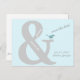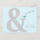 This "save the date" postcard features a blue bird perched on an ampersand. Customize with your event's details and your names.