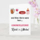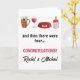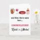 Congratulate the happy couple with this lovely cute card. It features a beer glass, a wine glass, a bowl, and a baby milk bottle. Lovely to give to any new parents. All text can be customized to suit your own needs. Personalize with the names of the happy couple.