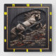 Introducing a striking wall clock that seamlessly blends functionality with artistic expression, featuring a captivating image of an Andalusian horse in mid-leap over a weathered stone wall. This exquisite timepiece is framed by a ½-inch flat black wooden border, which enhances its visual appeal while providing a sturdy structure. The embedded wood showcases intricate carvings that highlight a charred, textured grain, adorned with rugged burn marks in shades of red, grey, and black, creating a dramatic contrast against the lighter wood. This design not only serves as a practical clock but also as a stunning piece of art that can elevate any interior space.