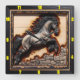 Experience the perfect blend of artistry and functionality with our stunning wall clock featuring a magnificent Andalusian horse in mid-leap over a weathered stone wall. This captivating design is beautifully framed by a ½-inch flat black wooden border, which enhances the visual impact of the piece. The clock's embedded wood showcases intricate carvings with a charred, textured grain, adorned with rugged burn marks in striking shades of red, grey, and black, creating a dramatic contrast against the lighter wood. This unique timepiece not only serves as a reliable clock but also as a striking work of art that will elevate any room's decor.