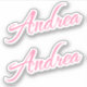 Andrea name in cursive script font in pretty pink x2. Two copies of name.