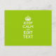 Your personalized Keep Calm saying on a fine custom android green style decor. A personalized Keep Calm style saying on a one of a kind gift. Humourous or whimsical try on your creative words on two editable lines of text. Remember to use CAPITAL letters for best results.