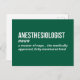 A funny anesthesiologist definition postcard for those who know the stress and humour of working in anesthesia. Perfect for doctors, CRNAs, residents, and med students. Makes a thoughtful appreciation or gag gift for hospital coworkers.