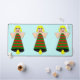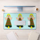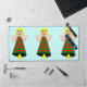 Ce somptueux tapis de bureau est doté d'un joli Ange de Noël avec des cheveux blonds, des yeux bleus et un grand sourire. Son corps est une cloche festive de couleur verte et rouge avec un clappeur jaune au fond.