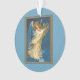 peinture vintage d'un ange avec l'expression angélique, la belle robe débordante et l'harpe d'or dans les bleus et le beige.