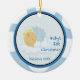 Want to always remember your baby's first Christmas for many, many years to come. Buy this ornament to hang year after year on your tree. It has a light blue centre with a baby angel lying on a cloud on it. The angel has blue wings. It has large white dots on a light blue background. Personalize with a name and a year. Check out the many other ornaments and products we have. ©JW Illustrations