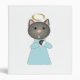 Un adorable chat gris habillé en ange, dont un halo sur un classeur