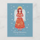 A modern angel in a red dress on a teal green background. Original art by Nic Squirrell. Change the text to customize.
