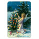 A beautiful vintage flexible Christmas magnet featuring an angel decorating a Christmas tree.
