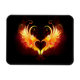 Angel fire heart with flaming wings on black background.