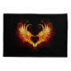 Angel fire heart with flaming wings on black background.