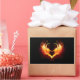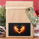 Angel fire heart with flaming wings on black background.
