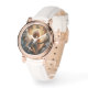 Ce magnifique ange tenant une harpe en regardant vers le haut est présenté sur cette montre pour femmes. Montre vintage en or rose avec bracelet en cuir blanc avec boucle fermoir. Utilisez-vous ou offrez-vous un cadeau, une jolie façon de garder le temps!