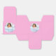 ANGEL IN THE CLOUDS 6, LIGHT PASTEL PINK-PARTY FAVOR BOX, square box style-A little girl angel resting in the clouds. The girl has dark hair and eyes, a ring of pink roses upon her head and fluffy white wings. She rests on a fluff of white clouds. The background is a solid light pastel pink colour. The angel is on the front and back sides of the favour box. There is two text areas on front, and one text area on back for you to personalize with. Edit all three (3) text areas to suit your needs. Delete or clear any text areas that you do not want. *This design is available with assorted background colours. Coordinating paper plates, napkins; paper cups, and more are available.