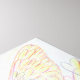 A white light guardian angel holds a heart and is surrounded by rainbow hearts at the angel's feet. A golden yellow halo is over the angel's head. The feathers on the angel's wings form into hearts. Painting was rendered with watercolor pencil on paper.