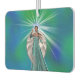 A beautiful angel wearing an aqua coloured dress sending an orb of light to you. She also has star light coming from her finger tip with light glows above her head. Background is a mix of blue and green colours. The wings were provided by Rachel Tallamy, rachzee.deviantart.com.