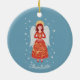Modern contemporary angel in a red dress on a teal blue background. Original art by Nic Squirrell. Change the name to personalize.