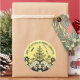 Change the background colour of this Christmas holiday food gift sticker for your cooking or baking gifts. Flying utensils with wings over a Christmas tree, with decorative flourishes, poinsettias, and a houndstooth background.