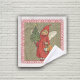 Ce linge est blanc avec un ange victorien vêtu d'une cape rouge à capuche tenant un petit sapin de Noël et présente sur un arrière - plan bronzé avec la neige tombée dans une bordure rouge ornée.