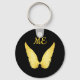 A pair of faux gold colored angel wings on an elegant black color. Girly and feminine. Template for Your monogram, Orange colored letters.