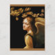 Thoughtful angel on a black background. Soft golden leaves across the top of painting. Detail from the "Virgin of the Rocks."