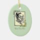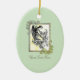 I was disappointed with the writing on the ornament. It’s just too small and can barely be seen. Also it was not as obvious on screen that the position of the hole for hanging was centered on person’s forehead. Writing that came with chosen frame is too small and can barely be seen.