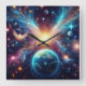 Horloge murale carré avec Angels. Images d'anges dans le ciel au-dessus de la terre avec des galaxies dans l'arrière - plan.