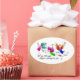 Angels Flying Happily “All Day” Watercolor Sketch Oval Sticker