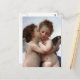 This beautiful postcard features the work of French painter William-Adolphe Bouguereau (1825 -1905). The original oil on canvas painting shows two cherubic angels kissing or rather the passionate boy angel planting a smacker on the coy girl angel. Sometimes known as "The First Kiss," "Amor and Psyche" or "Cupid and Psyche." The postcard would be perfect for lovers of classical art, angels and mythology. Postcards make great framed pictures, perfect for hanging on your wall, and are a cheap and chic alternative to expensive poster prints.