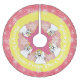 Angels Merry Christmas Personalized Christmas tree skirt features a beautiful design with a background of white snowflakes on pink, a ring of solid yellow, a ring of pink with white polka dots, and a pink star in the centre. Five little angels and white snowflakes add to this pretty Christmas tree skirt that you can easily customize with your family name! You'll treasure this pretty tree skirt for years to come.