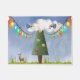 Hand drawn angels celebrating nature and a beautiful Christmas tree on this wonderful holiday doormat.