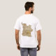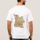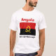 An editable title and slogan accompanies the yellow motif over red and black bands of the Angolan flag on the front of this t-shirt. The back displays a detailed map of Angola.
