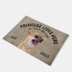 Angry Chihuahua Personalized Dog lover welcome doormat. This welcome mat can be personalized with your dog’s name, the slogan can also be changed or you could use a picture of your own dog (make sure it's transparent). Text reads: Princess lives here…. All treats welcome