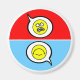 Your dishes angry or happy? Unique captionless cartoon smiley-face, angry-face, clean- dirty, dishwasher magnet depicts an angry face for "dirty dishes" and contented happy face for "clean dishes." No words are necessary on this captionless cartoon dishwasher magnet. The faces say it all. Perfect little gift for anyone whose moods can change quickly from a frown to a smile. In fact, you could put this one on your fridge to telegraph your frame of mind to other members of your family.