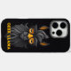 This iPhone case is for llama lovers. The design features a grumpy and angry looking geek llama with yellow eyes. You can personalize the text.