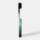 The tiger on the case could be depicted in a dynamic and aggressive stance, with detailed features such as the powerful muscles, sharp claws, and ferocious expression that convey its readiness to attack. The green colour palette would add a unique and bold twist to the design, making it stand out and grab attention.