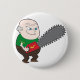 This is a cartoon illustration of an older bold man who's looking kinda angry at his chainsaw. Let's hope he's only planning on cutting down a tree and nothing more evil then that!