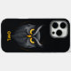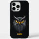 This iPhone case is for bird lovers. The design features a grumpy and angry looking owl with yellow eyes. You can personalize the text.