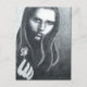 A drawing of a teenage girl holding a rose with an expression of angst on her face.